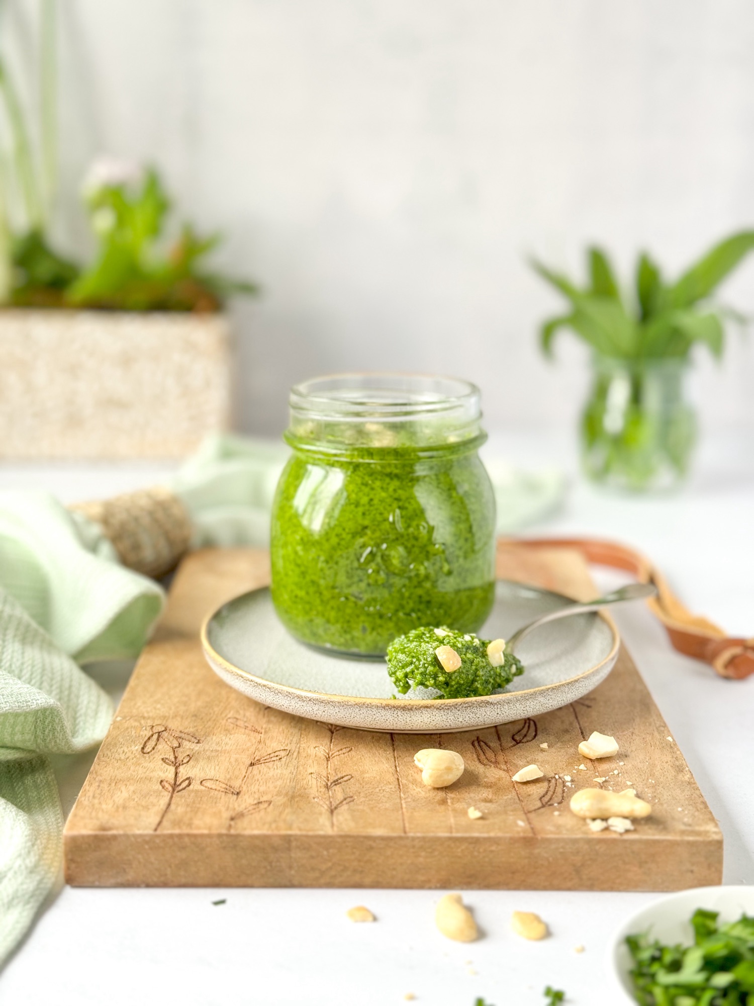 Die Farbe des Geschirrtuchs von @greengateofficial passt doch perfekt zum Pesto, was meint ihr? 💚🌱